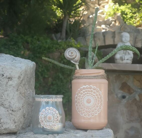 Recyclingkunst- bemalte Marmeladengläser/ Schneckenkunst
