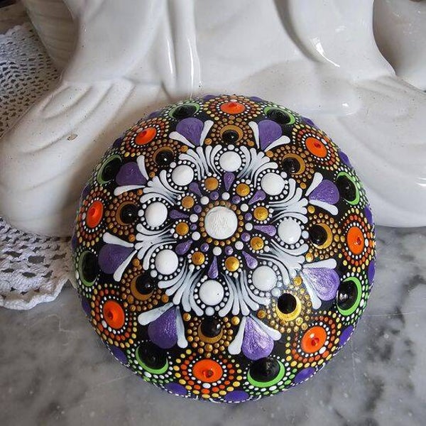 Dieser Mandalastein wurde von mir selbst handgegossen.Er wurde mit viel Liebe, Ruhe, Zeit und viel positiver Energie in meinem Atelier in Spanien bemalt.
